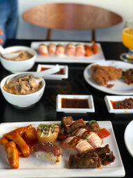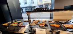 Hyvä perus sushibuffa jossa ok lämpimät ruuat